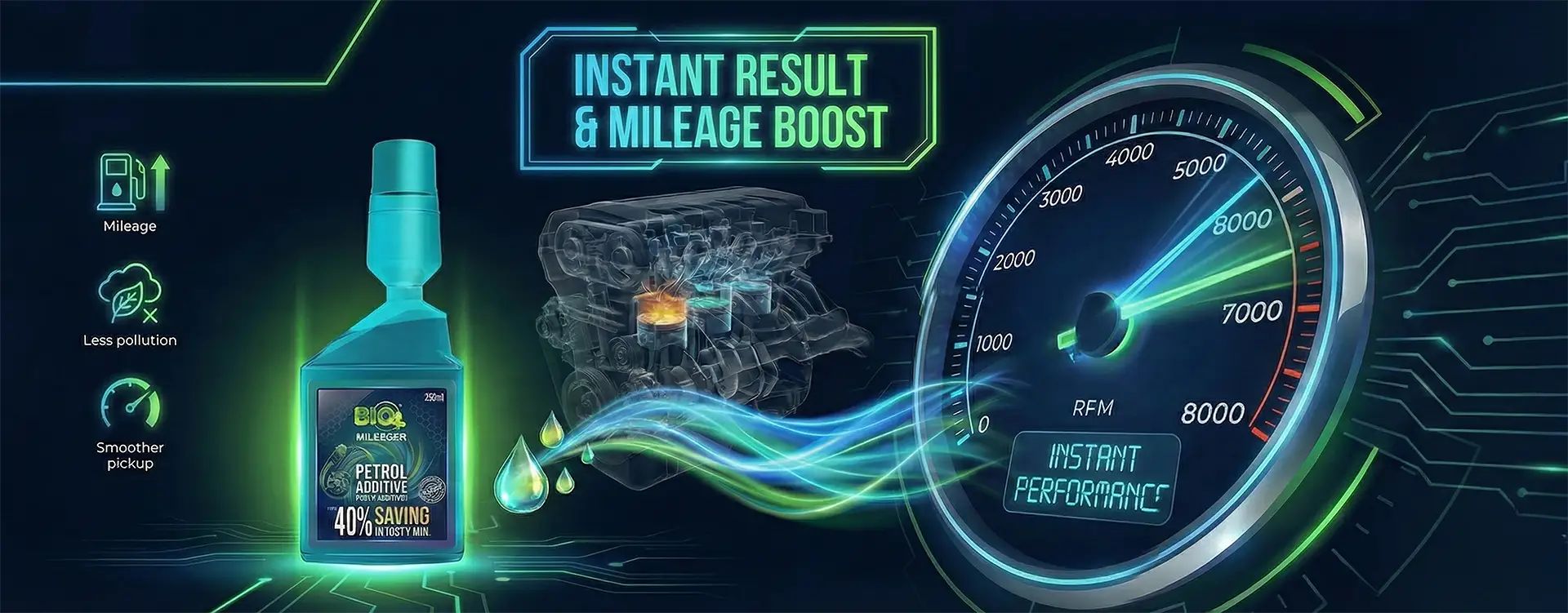 fuel combustion for cleaner, more efficient burning, reducing fuel wastage and increasing mileage by up to 40%, leading to lower fuel consumption and long-term cost savings.